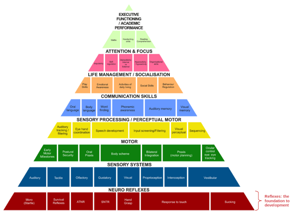 When the Moro stays active, the ability to understand sensory stimuli is compromised and the fight/flight response is too easily triggered undermining the ability to differentiate between what is safe and not safe. The child will be in a state of reactivity and hypersensitivity and the excess release of stress hormones can impact the child’s physical and emotional well-being and affect behaviours.